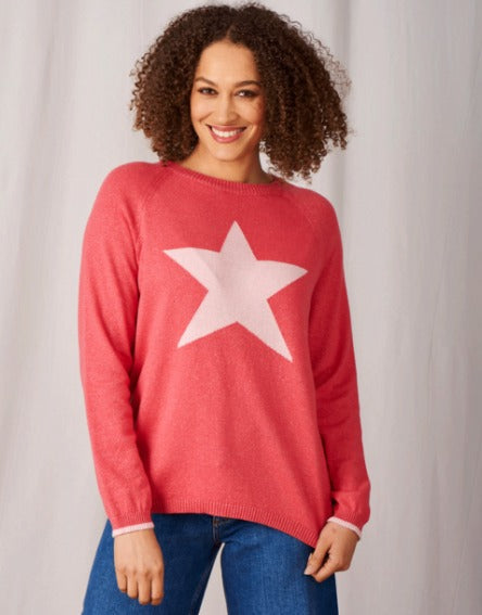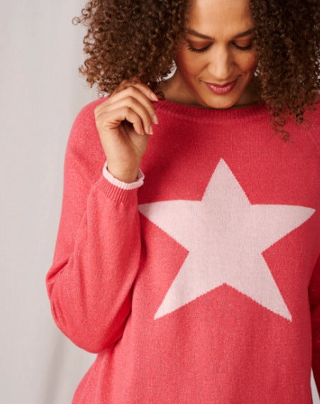 Classic Star Cashmere Jumper, Coral Lurex/Baby Pink